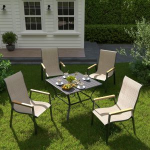 The UDPATIO Patio Chairs Set of 4 is the perfect addition to your outdoor space. These stackable dining chairs feature a high back design for added comfort and support. The chairs are made with a durable metal frame and all-weather breathable textilene material, making them ideal for use in your lawn, garden, backyard, or deck….