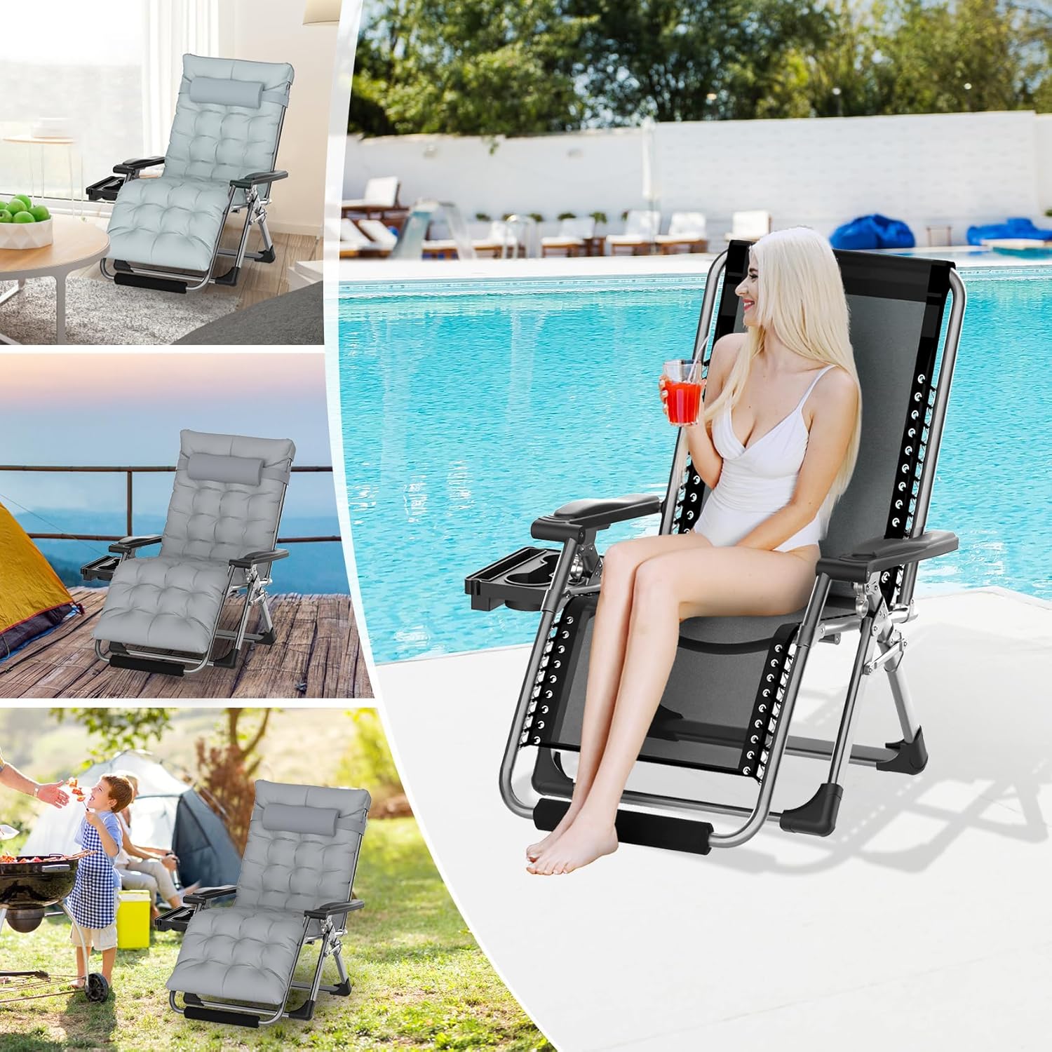 Suteck Zero Gravity Chair, XL 29in Lounge Chair Anti Gravity Chair w/Removable Cushion, Reclining Patio Chairs with Upgraded Lock, Pillow and Footrest, Folding Patio Recliner for Indoor Outdoor