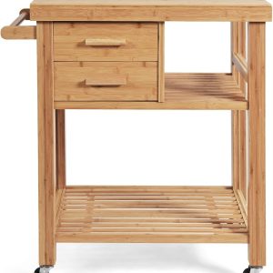 Introducing the PETSITE Bamboo Kitchen Island Cart, the perfect addition to your kitchen for extra storage and functionality. This versatile cart features a beautiful bamboo butcher block top, perfect for food prep or serving guests. The cart is equipped with two spacious drawers, two shelves, and a convenient towel rack, providing ample space for all…